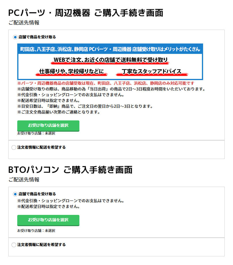 BTOパソコン・PCパーツ・周辺機器の店舗受け取りサービスご利用方法
