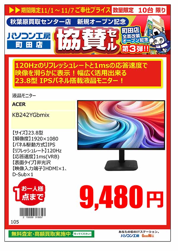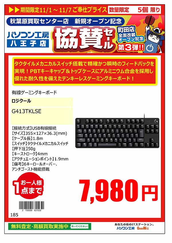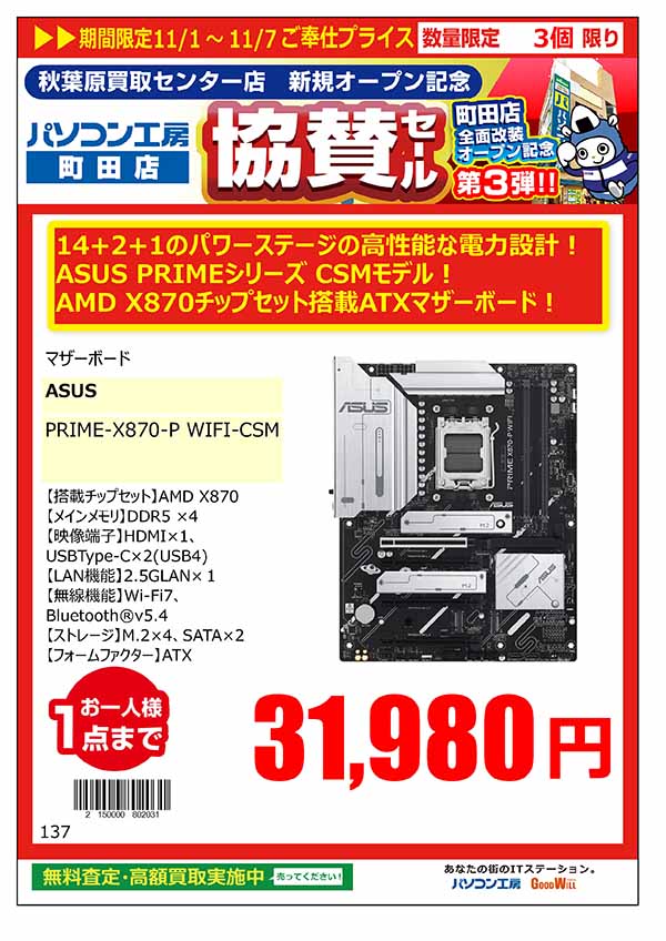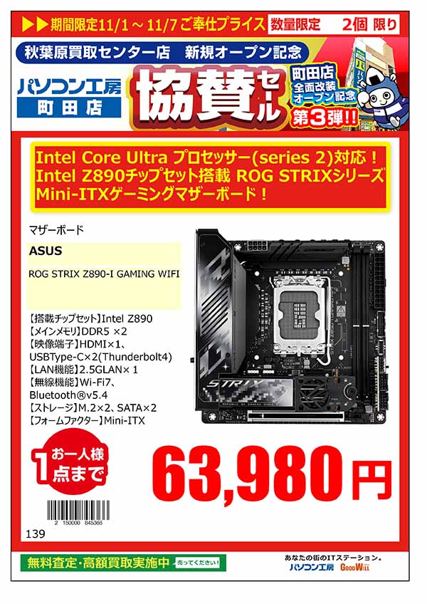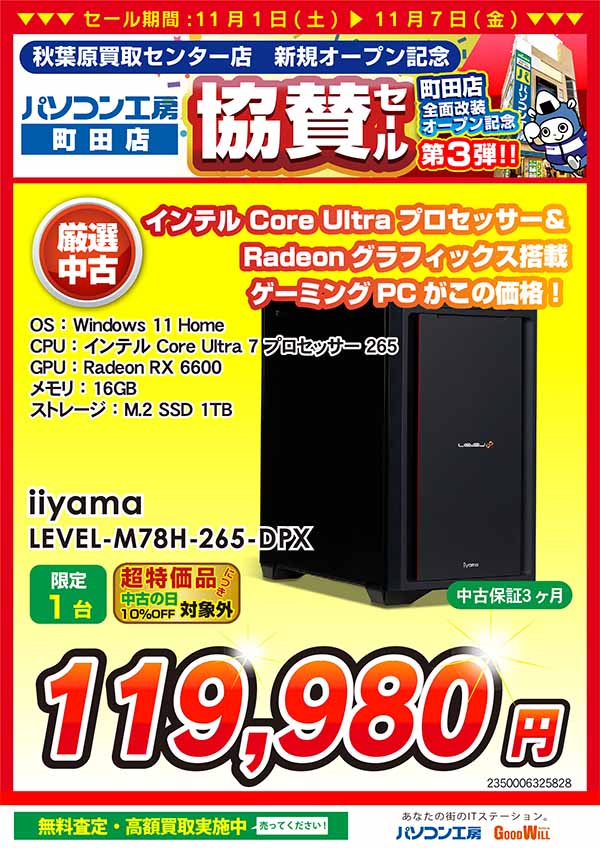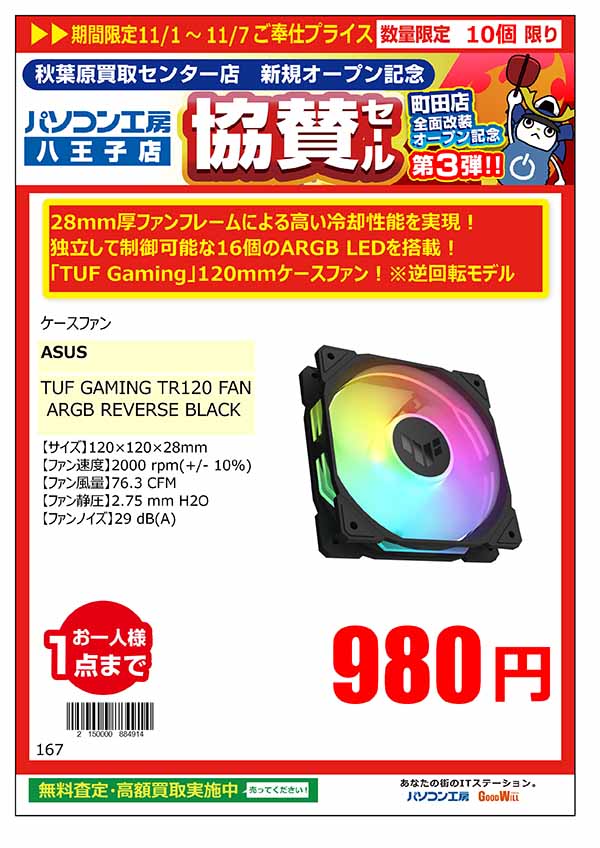「パソコン工房 秋葉原買取センター 新規オープン記念 協賛セール」特価品情報