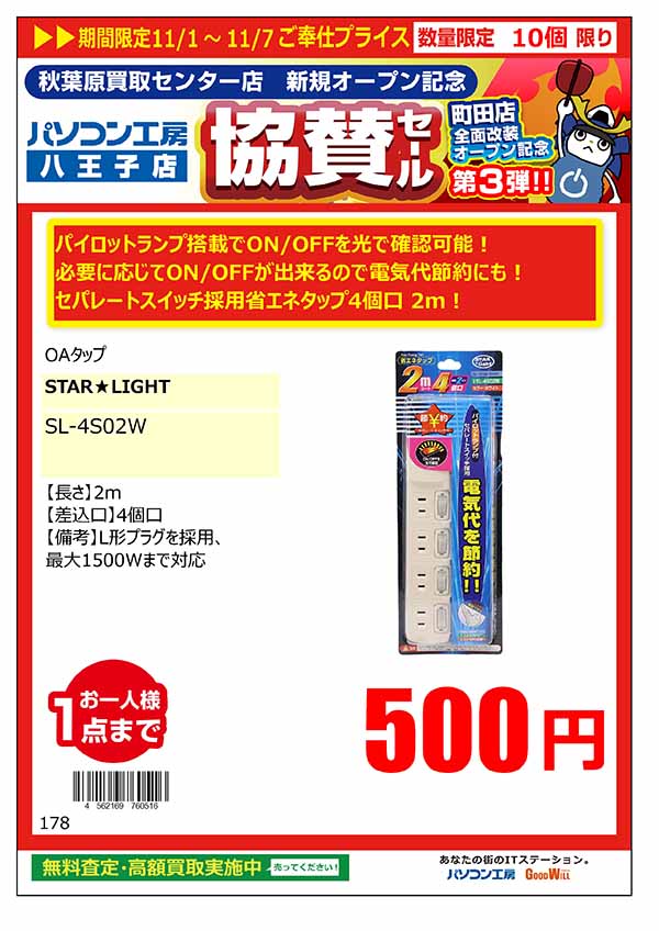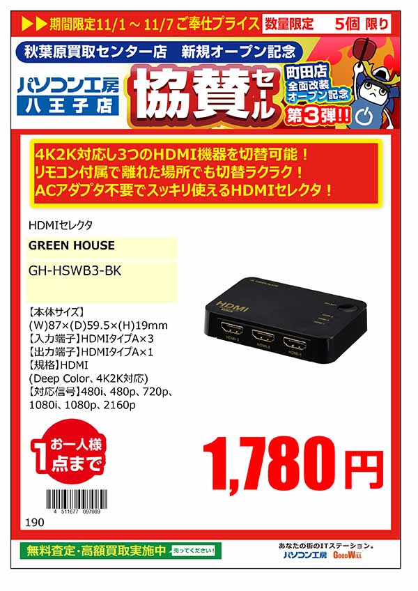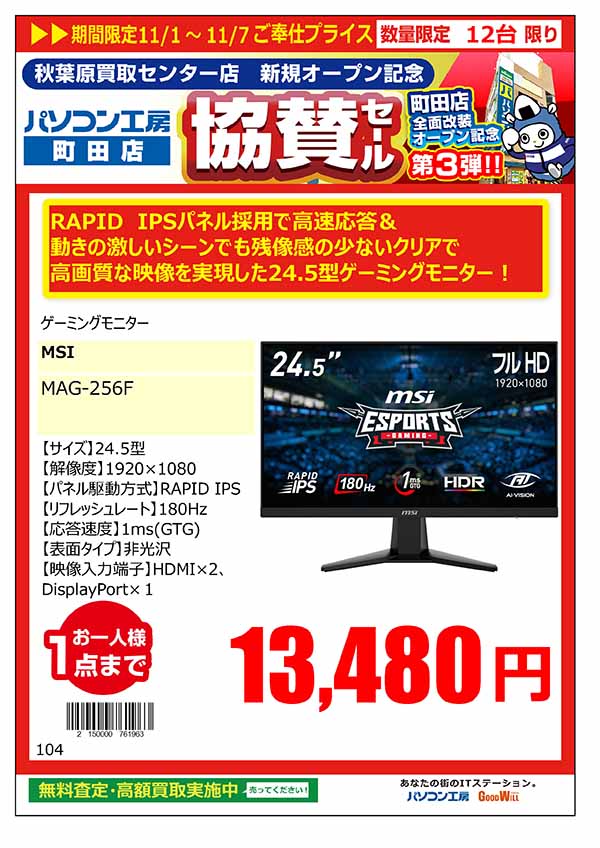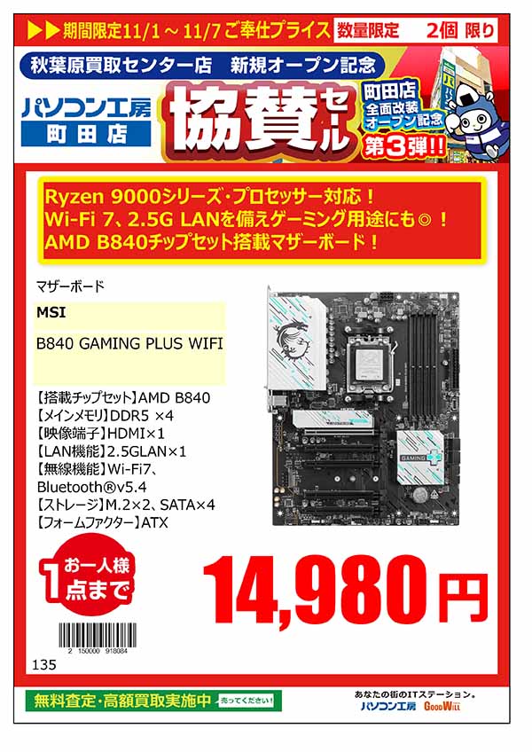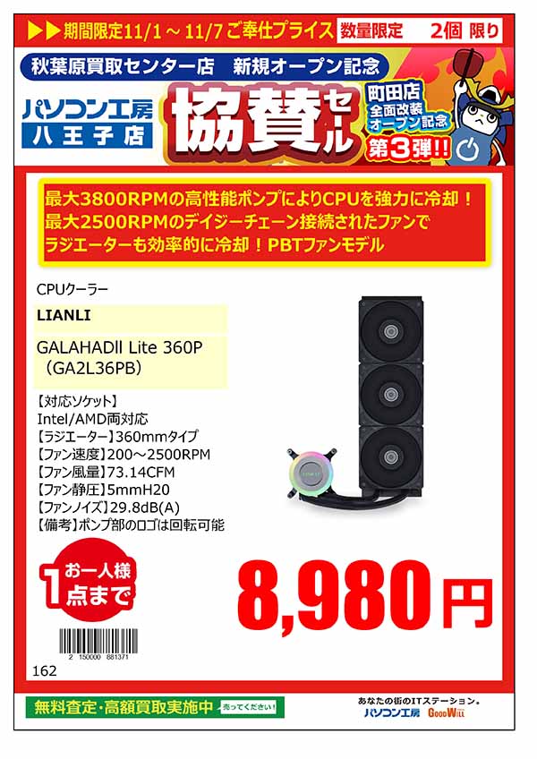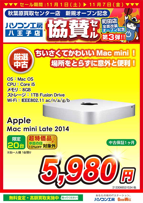 「パソコン工房 秋葉原買取センター 新規オープン記念 協賛セール」特価品情報