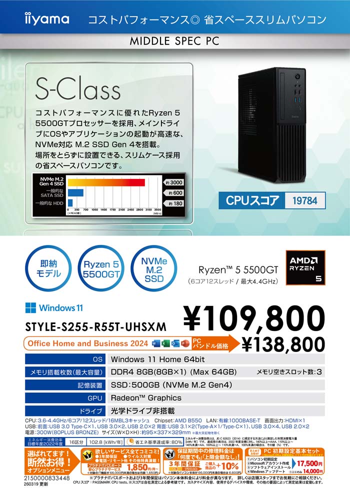 コストパフォーマンス抜群! デスクトップパソコン(受注生産)SOLUTION-S055-R55T-EZX