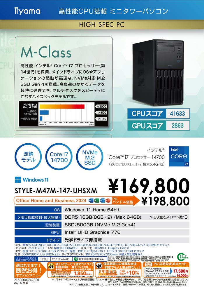 最新OS Windows 11搭載ミニタワーパソコンSTYLE-M47M-147-UHSXM