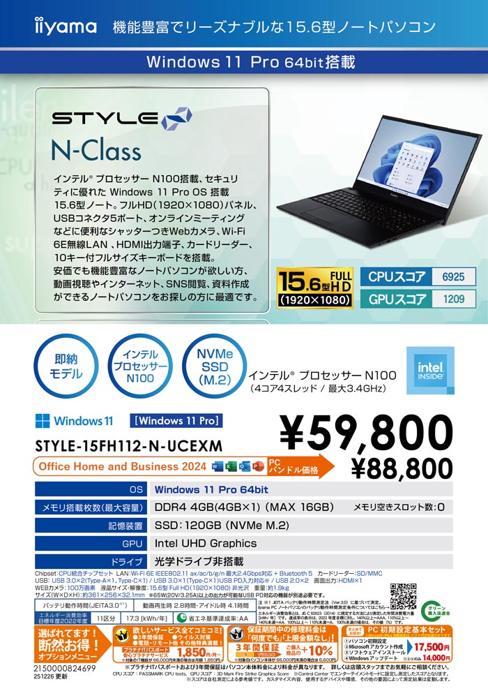 Windows 11 Pro 搭載15.6型液晶ノートパソコンSTYLE-15FH112-N-UCEXM [Windows 11 Pro]
