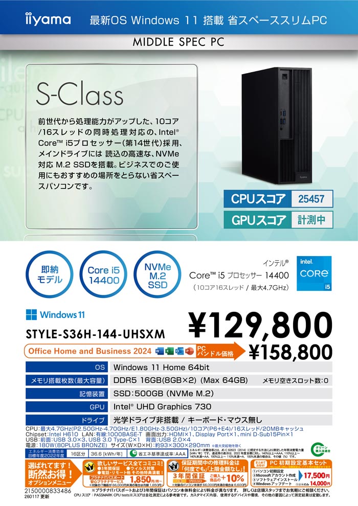 最新OS Windows 11搭載スリムパソコンSTYLE-S36H-144-UHSXM