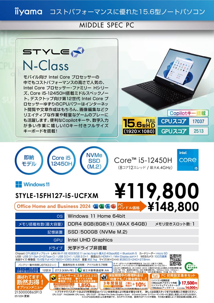 ※本モデルは受注生産です。価格は予告なく変更となる場合がございます。最新価格はリンク先の通販サイトをご確認ください。- Windows 11 Home